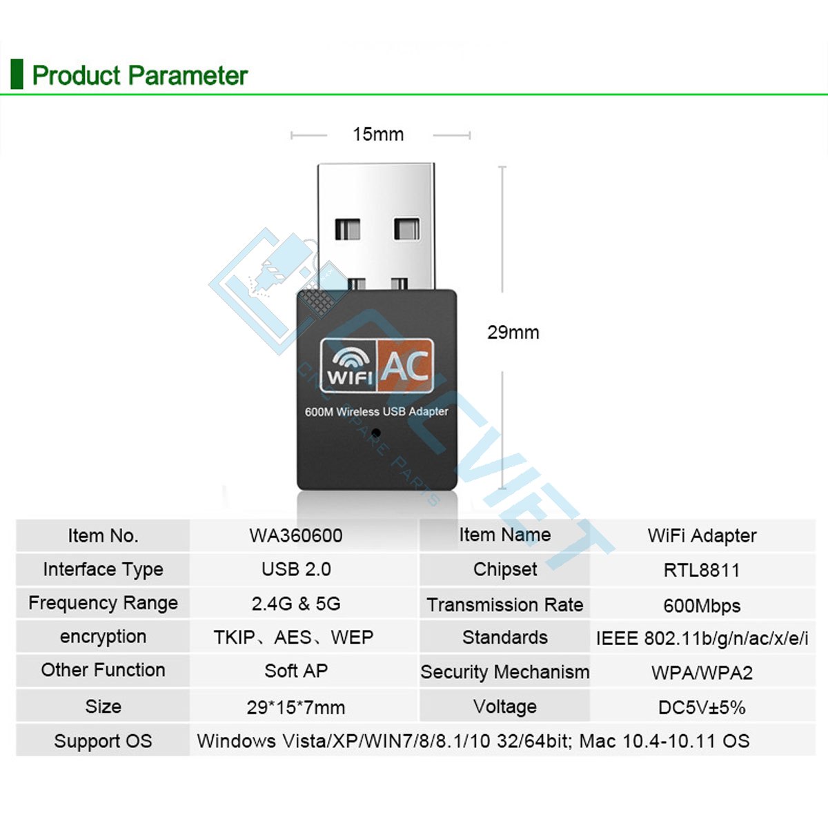 📗 THÔNG SỐ NỔI BẬT CỦA USB WIFI AC 600Mbps: